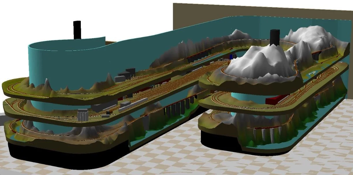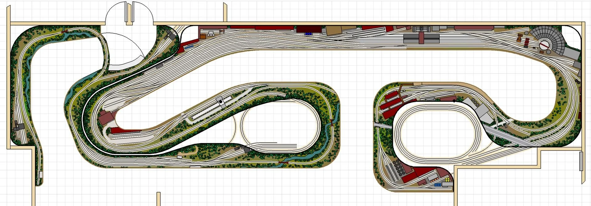 Every layout design project I do is planned for both realistic operation and a great appearance while keeping any other desires of the client in mind. This entails among other things, making provision for adequate staging, properly designed yards and switching towns, interesting sight lines, and an appropriate balance of track, structures and scenery.
