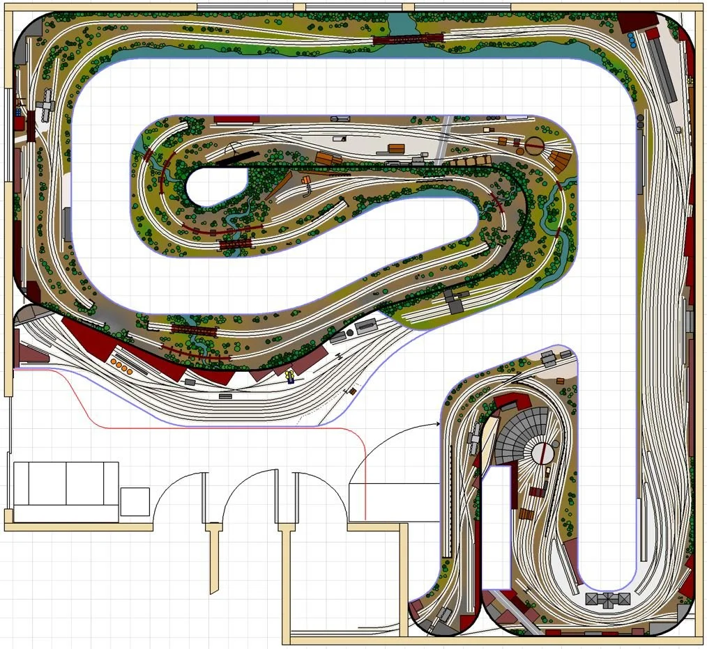 My current layout projects are all drawn using a program called 3rd-plan-it. This is a powerful CAD engine that results in an accurate drawing and ensures that the final result will fit the space perfectly. Other advantages of using this software include its ability to plot accurate easements for all curves, calculating grades and elevations, and if desired creating a full-sized track plan to use as a template for accurately positioning track on your benchwork.